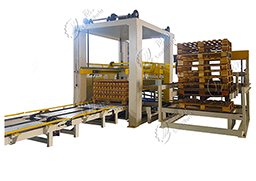 6)本機設計有空棧自動收集裝置,升降動力電機加以變頻控制,空棧托舉梁由氣缸帶動,可自動開合,碼垛整齊、方正。承載棧板數量可達12塊。