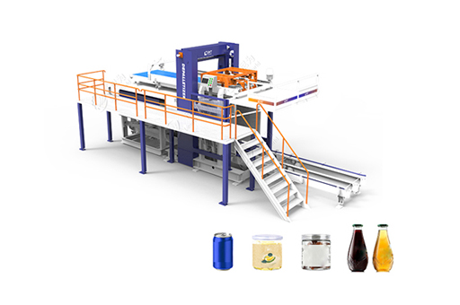 空瓶卸垛/拆垛機主要用于整垛的各種玻璃瓶、馬口鐵罐、鋁罐等空罐的自動卸垛拆垛,它將堆疊于棧板上的空罐,由下而上一層層的提升并推至輸送道上,可節省人力,提高生產效率。
