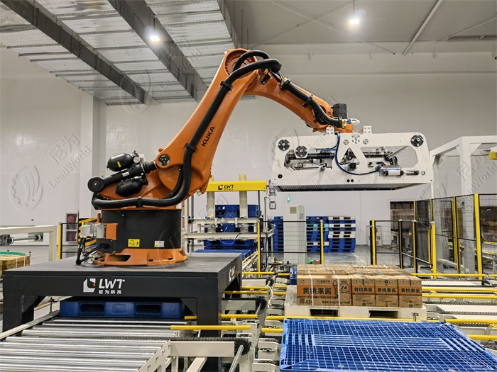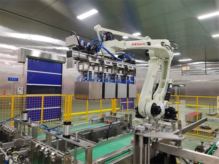 機器人碼垛機是機電一體化高新技術產品。可按照要求的編組方式和層數,完成對料袋、膠塊、箱體等各種產品的碼垛。
